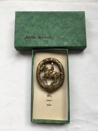 Nice German 'Reiterabzeichen' in Bronze comes with the original box, pin is a little bit bent.