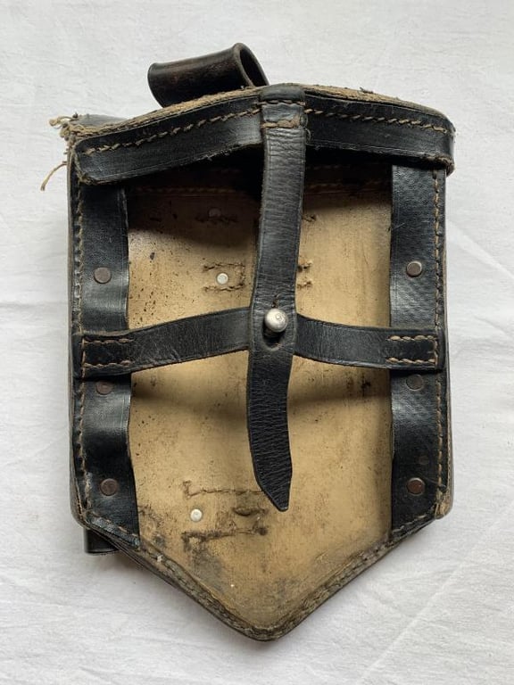 In nice used condition a Folding Shovel Carrying Case, 1st Model which is nicely maker marked 'A. Fischer Berlinc 2' and dated '1940'.