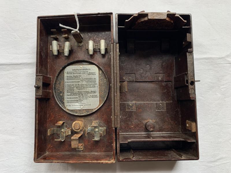 In nice condition a Bakelite Field Lantern Spare Parts Box 'einheitslaterne 37', which comes with a few parts in it.